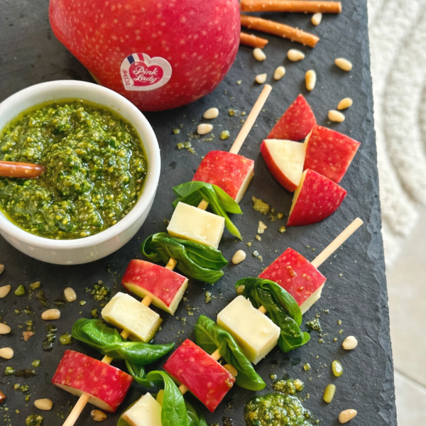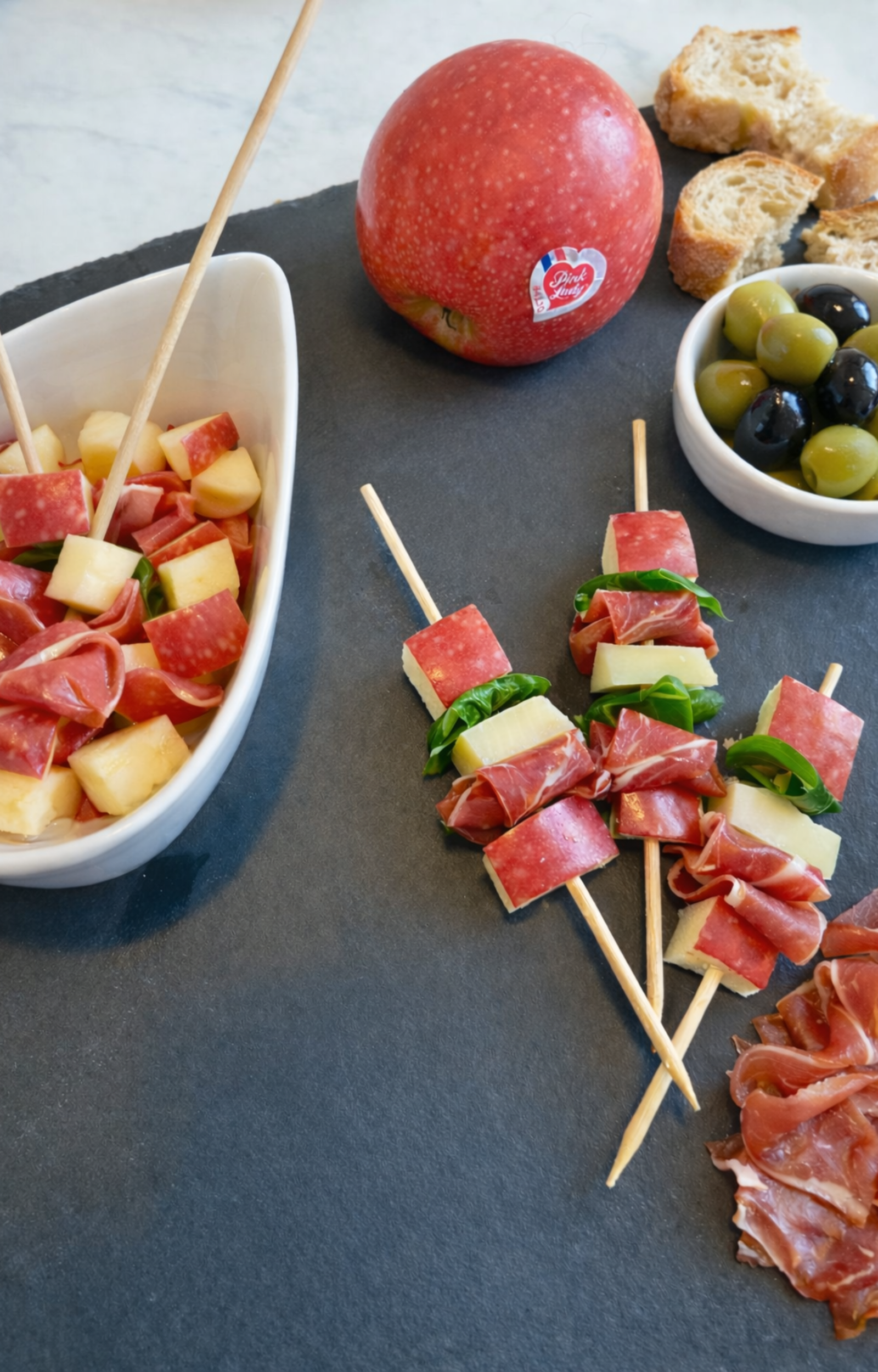 - Cortar las manzanas Pink Lady® y el queso comté en cubitos.