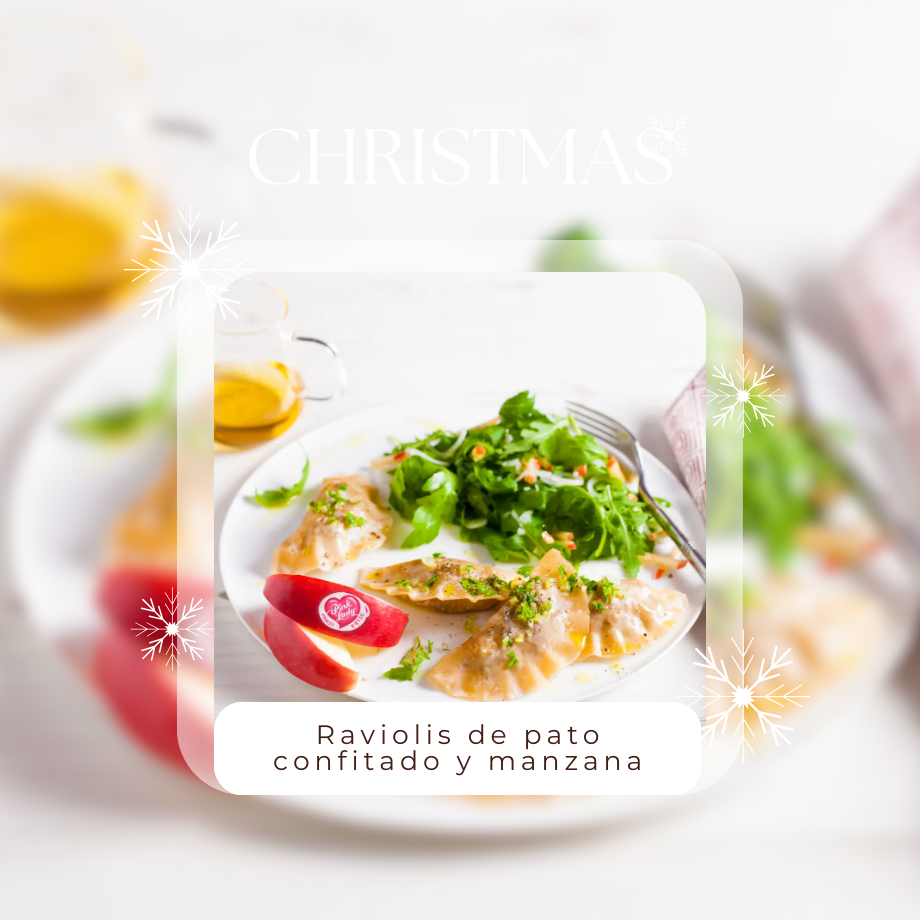 Tras un entrante ligero y afrutado, damos paso al plato principal con estos deliciosos raviolis caseros rellenos de confit de pato y manzanas Pink Lady®.