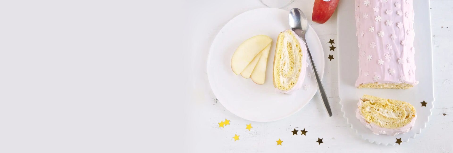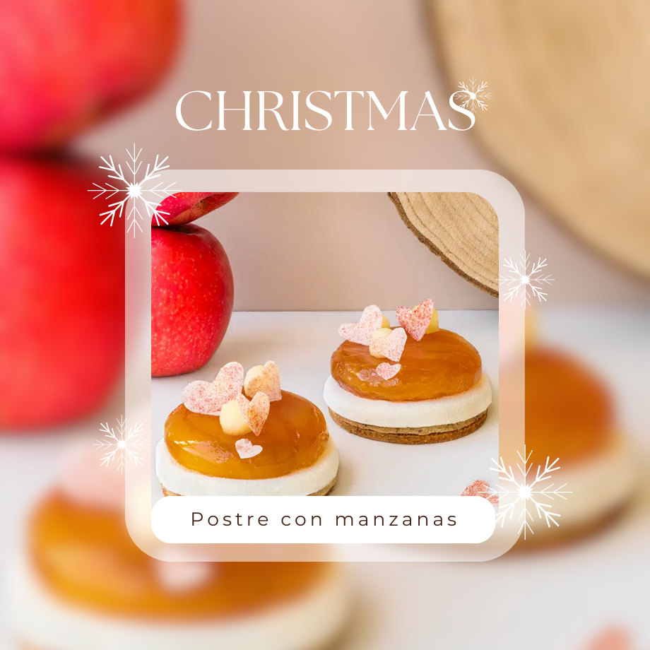 Esta receta combina un esponjoso bizcocho genovés relleno de una mousse ligera de manzana Pink Lady® y recubierto con una ganache sedosa de chocolate blanco. El toque final lo aporta una delicada decoración con pequeñas estrellas, que realza la estética festiva del postre.