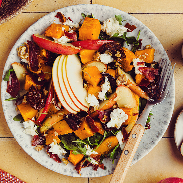 En solo 25 minutos podrás preparar un plato ligero, sencillo y sabroso. La combinación de calabaza asada, miel, manzanas Pink Lady®, rúcula, queso de cabra, tomates secos y jamón serrano es simplemente perfecta.
