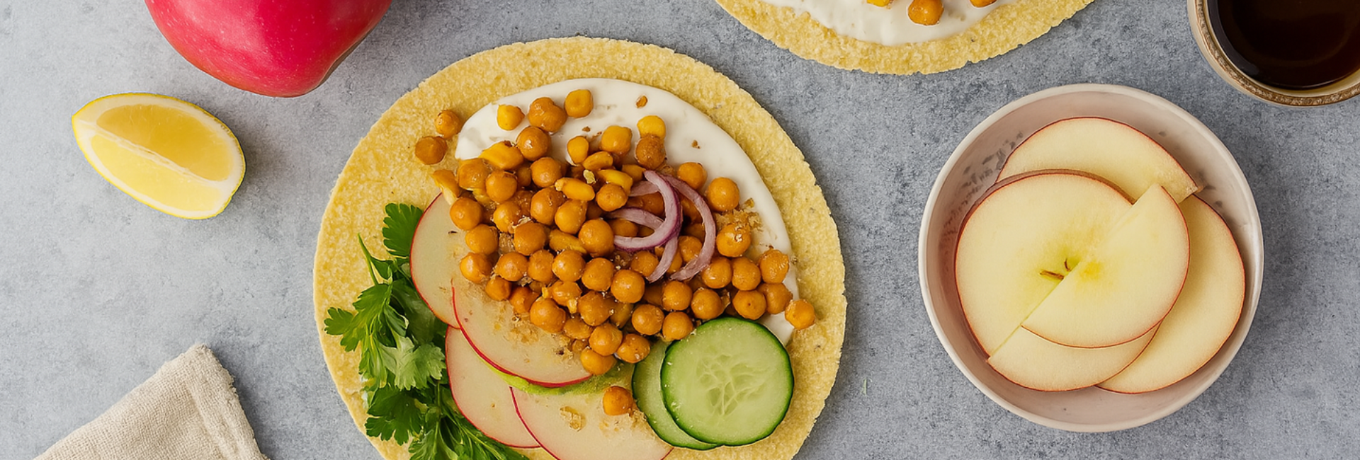 Entre crujientes manzanas Pink Lady®, maíz, especias, lima y tortillas mexicanas, los ingredientes se funden para conseguir una explosión de sabores que te llevará a otras culturas gastronómicas. Pueden comerse como plato único o incorporarse a una comida ligera o una cena vegetariana especial.