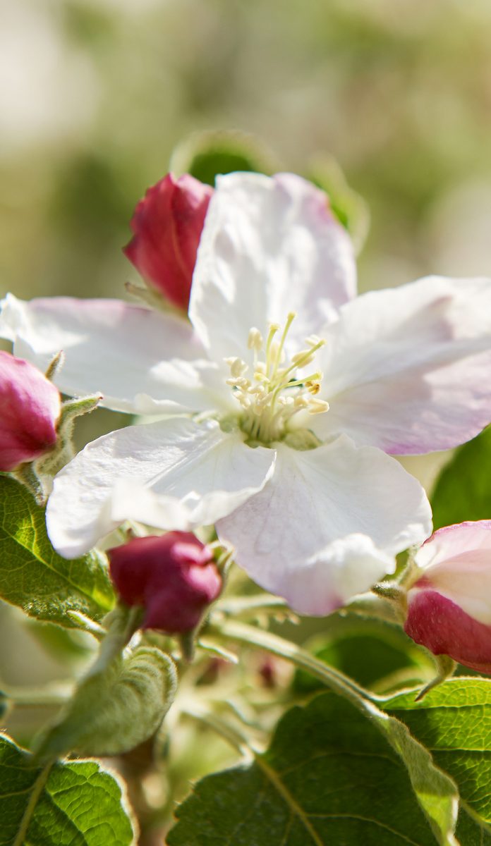 De teler selecteert daarna de bloemen die het best het licht ontvangen, zodat de boom niet overbelast wordt en goed volgroeide en gekleurde appels produceert.